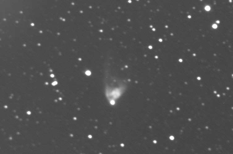 This is a combination of six, eight minute images taken with a Pictor 416XT. The Pictor was attached to an LX200 10" F/6.3 telescope. A Pictor 201XT was attached to an ETX for guiding. Each of the six images was corrected with a dark frame and a flat field. After combining, the image was logarithmically stretched.