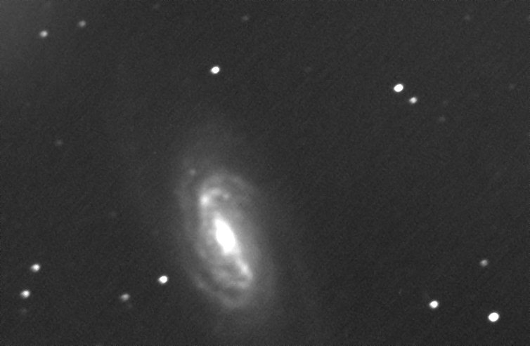 This is a combination of four, eight minute images taken with a Pictor 416XT. The Pictor was attached to an LX200 10" F/6.3 telescope. A Pictor 201XT was attached to an ETX for guiding. Each of the four images was corrected with a dark frame and a flat field. After combining, the image was logarithmically stretched.